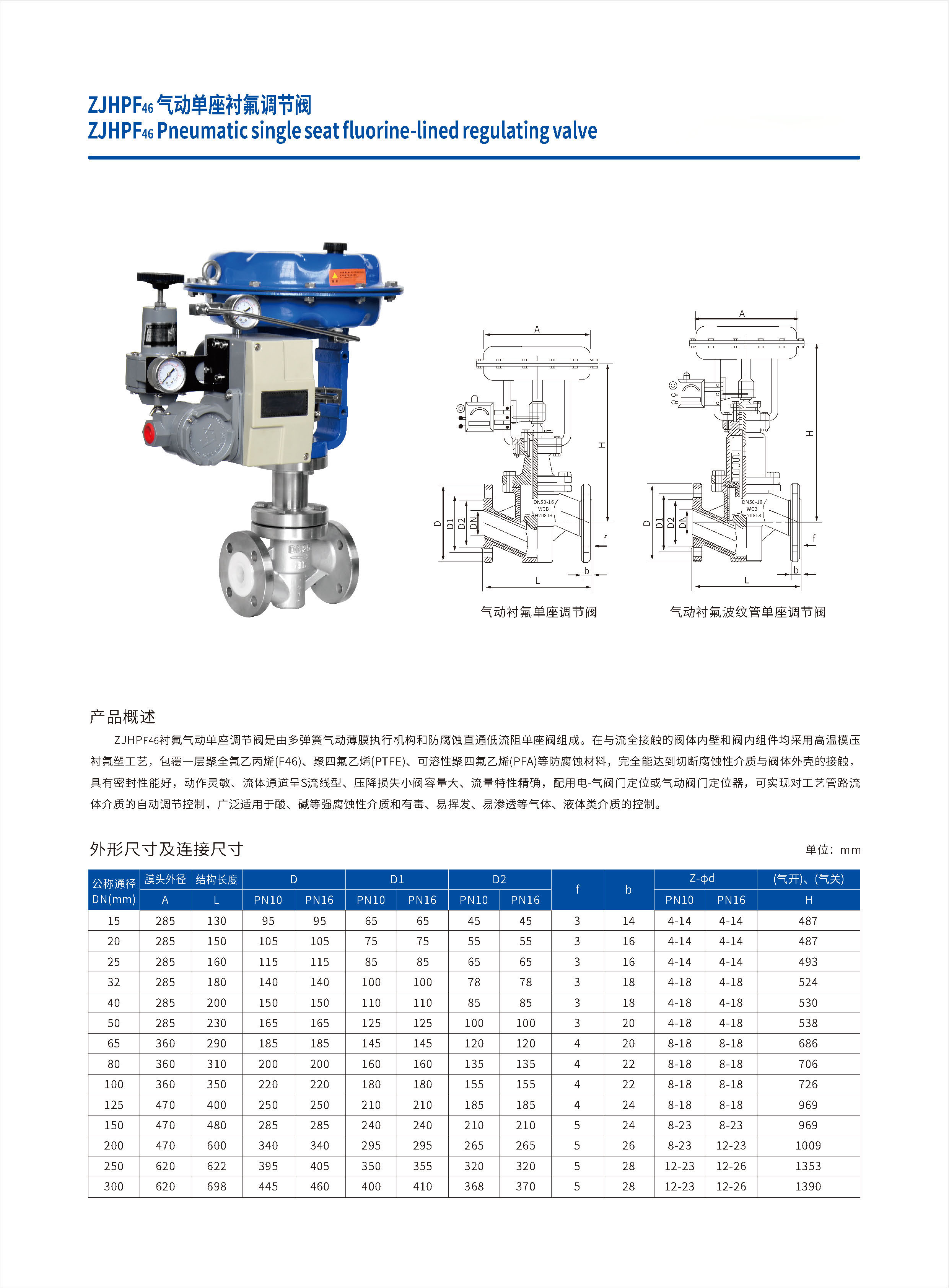ZJHPF46气动单座衬氟调节阀