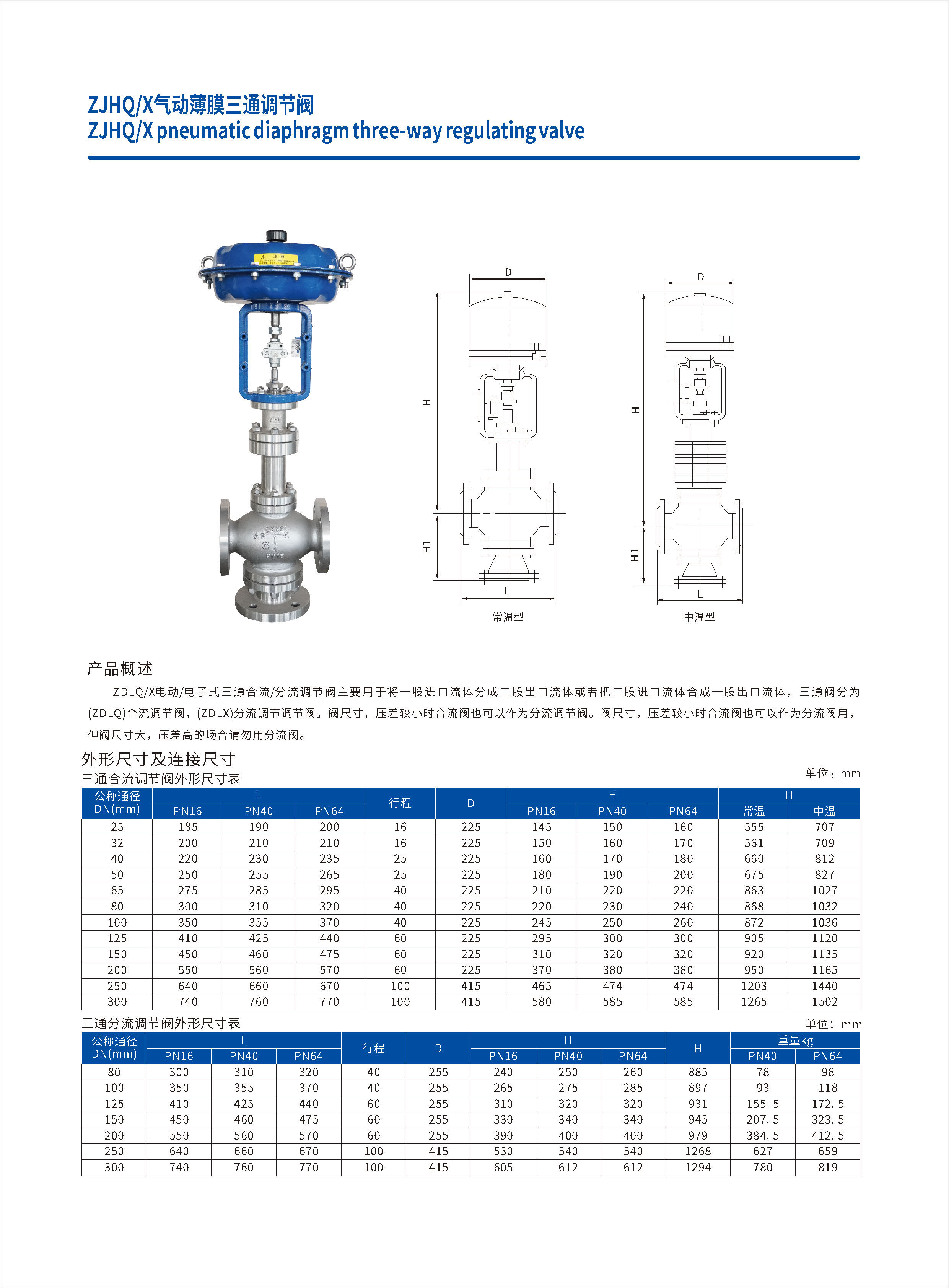 ZJHQX气动薄膜三通调节阀